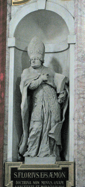 Several sculptors also worked on the furnishing of the new Baroque cathedral. One was Angelo Putti, who came to town in 1712–1713 and created large statues of the first four bishops of Emona (the Roman city that once occupied the site of Ljubljana). No one knows what they looked like, of course, but Putti rendered them as robust Baroque-era churchmen, confident in their power and authority. St. Florius looks ready to smack down anyone with the temerity to question either. (The picture is a little fuzzy because I refrained from using the flash in the cathedral, and as a result it had to be drastically Photoshopped.)